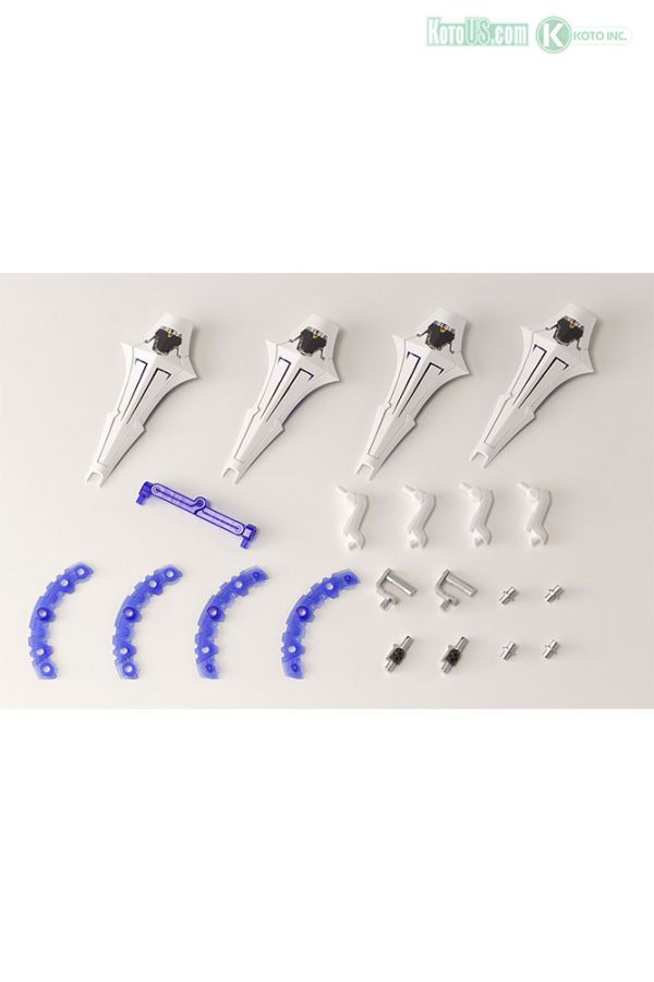 ■The Multipurpose Flying Units are composed of front shield parts and back mecha parts. The mecha parts have built-in clear wings that can be opened and closed.